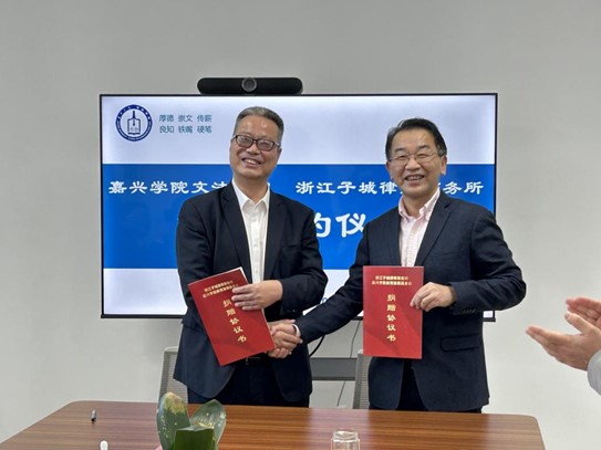 10月20日下午,文法学院与浙江子城律师事务所捐赠签约仪式在厚德楼268会议室举行。浙江子城律师事务所主任姚武强、浙江子城律师事务所党支部书记高文江、嘉兴学院社会合作处处长丁玉泉、文法学院党委书记洪坚、院党委副书记虞岚出席仪式。捐赠仪式由文法学院副院长(主持工作)童建华主持。