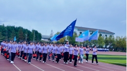 入场仪式上,学院方阵尽显风采。同学们整齐列队、精神抖擞,号铿锵有力。行至主席台,同学们挥舞红旗与红丝带组成红色海洋和巨型五角星,“省身励行,智创未来,团结一心,逐梦赛场”的口号响彻全场,展现了学子们的昂扬风貌。