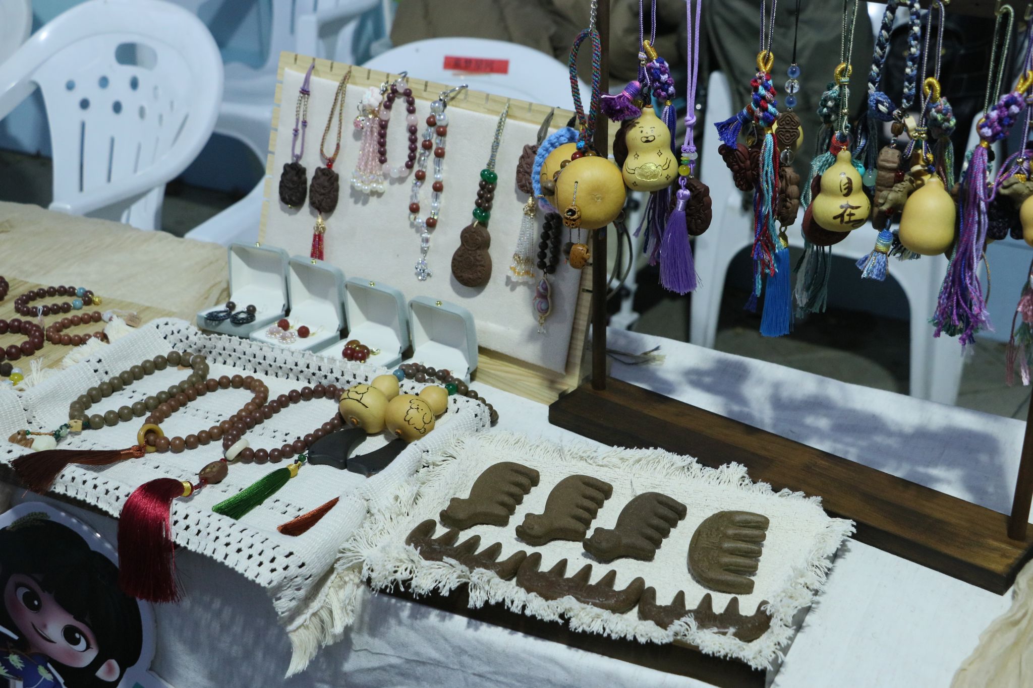 由医学院合作创业团队带来的合香珠、首乌按摩梳、箱包挂件等中草药饰品,也在本次市集中亮相。这些产品既保留传统工艺的韵味,又融入现代设计理念与中草药康养功能,展现出医学相关产业多元发展的可能性,为学生创新创业实践提供了新思路。