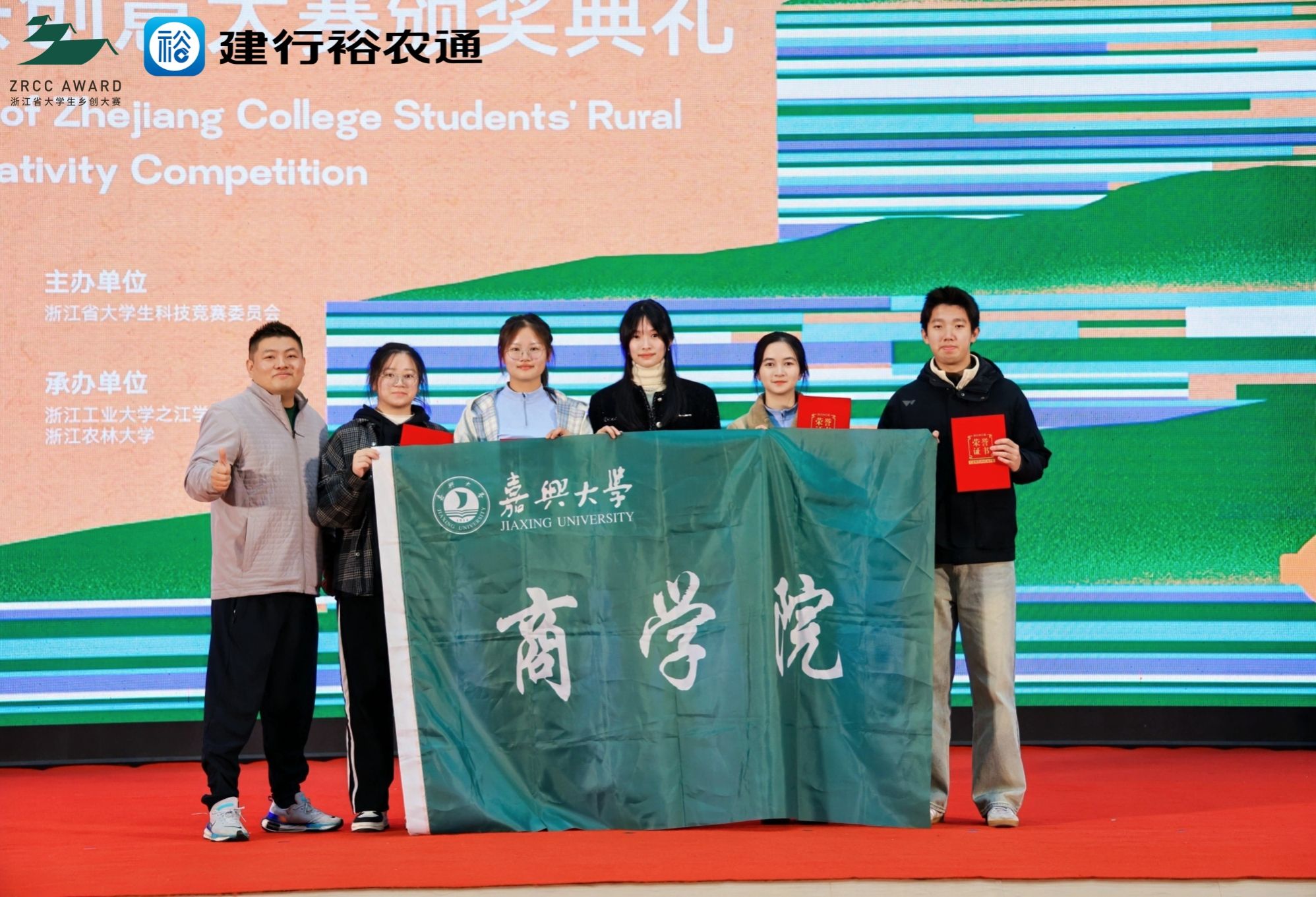 11月26日,“建行裕农通杯”第八届浙江省大学生乡村振兴创意大赛颁奖典礼圆满落幕。本届大赛汇聚全省108所高校的4158支团队同场竞技,竞争激烈。嘉兴大学商学院学子凭借出色表现,最终斩获金奖2项、银奖2项,充分展现了商院学子的专业素养与青春风采。