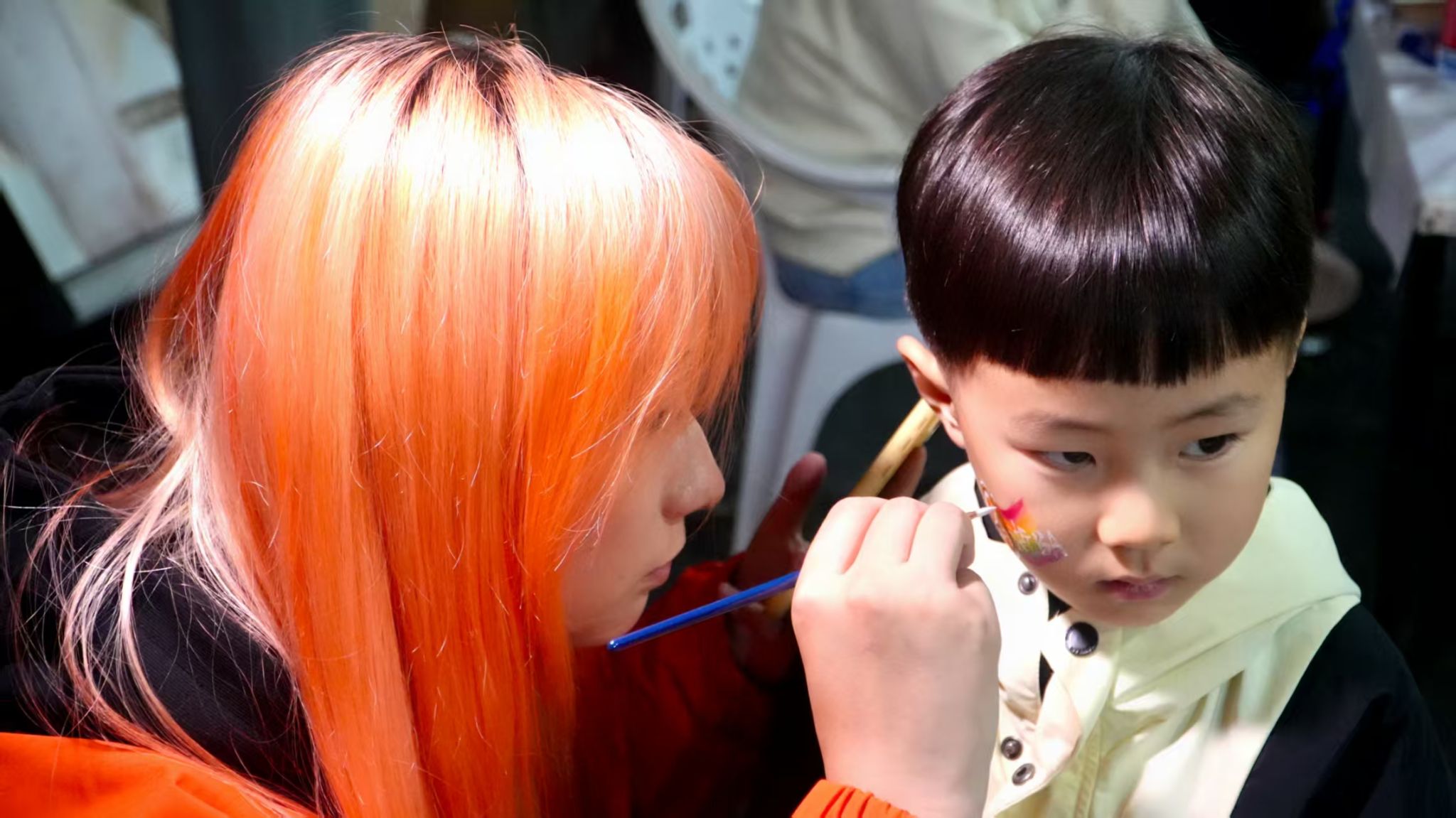 由同学们自主设计的数款“浙BA”主题面部彩绘,成为了现场最受欢迎的互动体验。他们用专业的画笔将赛事符号与城市热情描绘在一张张笑脸上,不仅展示了扎实的专业技能,更完成了从课堂习作到服务公众的生动实践。