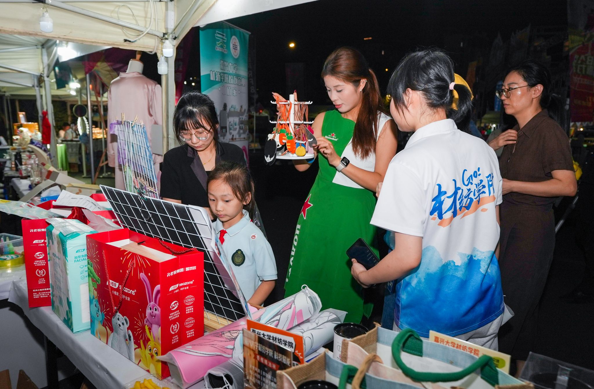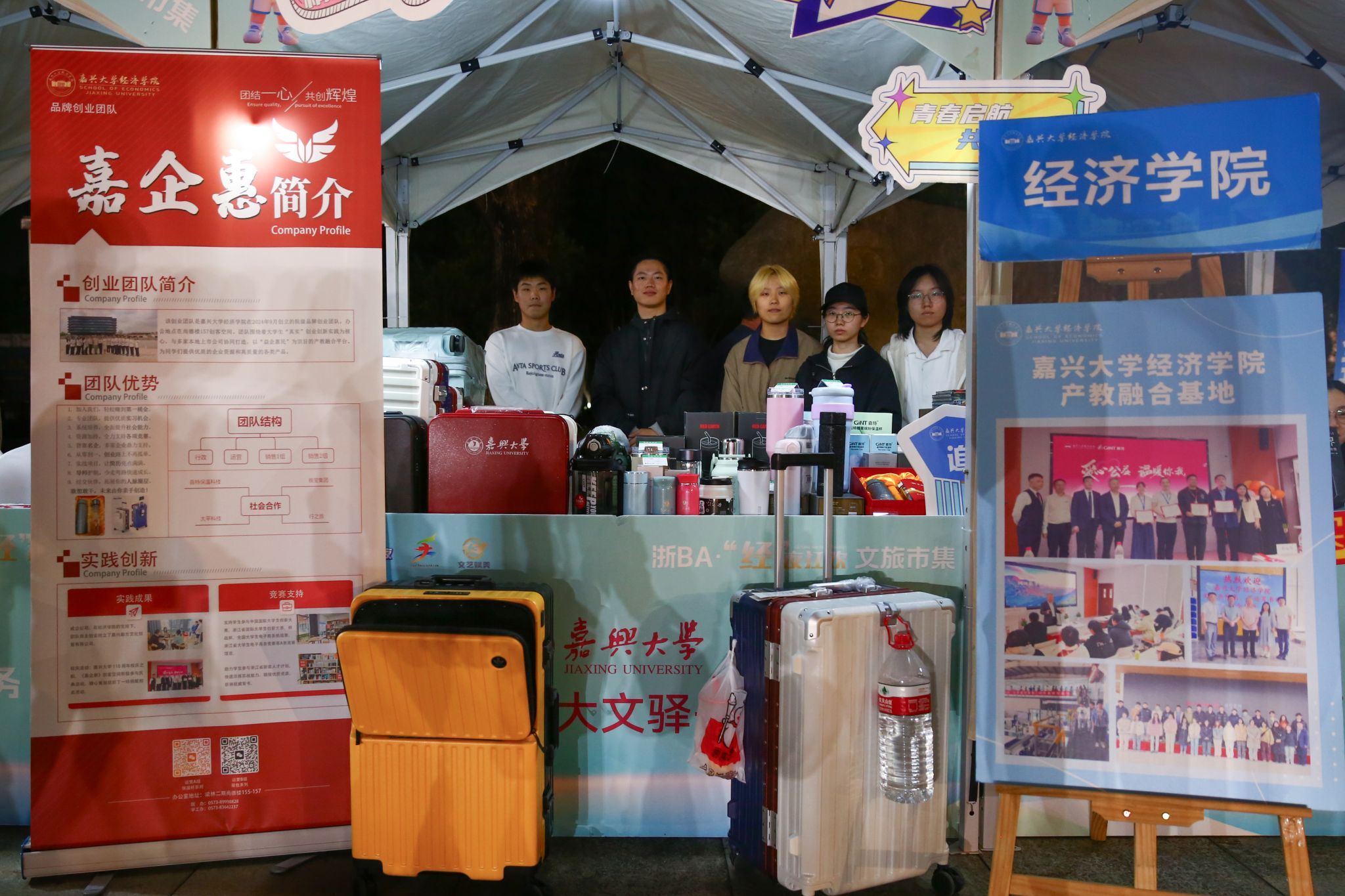 在为期5个月的活动期间,学生团队深入调研地方文化市场需求,结合专业特长开展文化产品研发,将红船精神、运河文化、古镇风韵等元素融入文创设计。在芦席汇历史文化街区、嘉兴大学体育馆、秀湖全民健身中心等多场景中,学生们开展从创意设计、产品研发到市场运营与销售的全流程实践。200余名参与活动的学生累计研发文创产品超100项,其中80%以上实现市场化转化,实现了文化价值与市场效益的有效贯通。