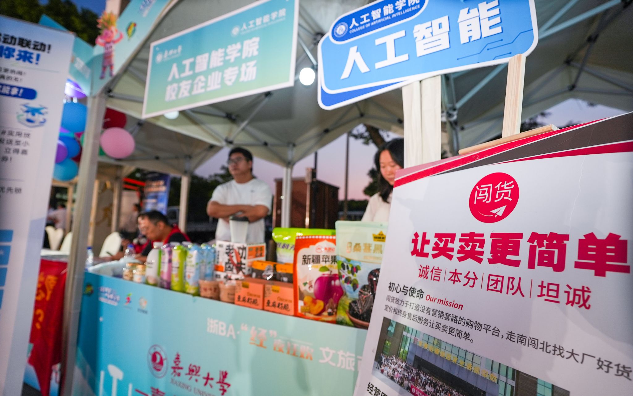 自2025年8月启动以来,“嘉大文驿·青春市集” 携着浸润书卷气息又饱含市井生机的青春之风,悄然漫入嘉兴的街巷与场馆。作为嘉兴大学以文化育人为导向的创新创业实践载体,该活动将育人场域从校园延伸至城市公共空间,成功举办文化实践活动20场,在真实的社会场景中实现文化浸润与价值引领。活动中,学校师生深入挖掘本地优秀传统文化和红色文化资源,立足专业实践与市场需求,共同开发文创产品百余种,让地域特色文化弘扬、红色基因传承与专业实践教学有机融合,在推动区域传统文化创造性转化、创新性发展的实践中,进一步坚定文化自信,涵养家国情怀,实现以文化人、以德育人。